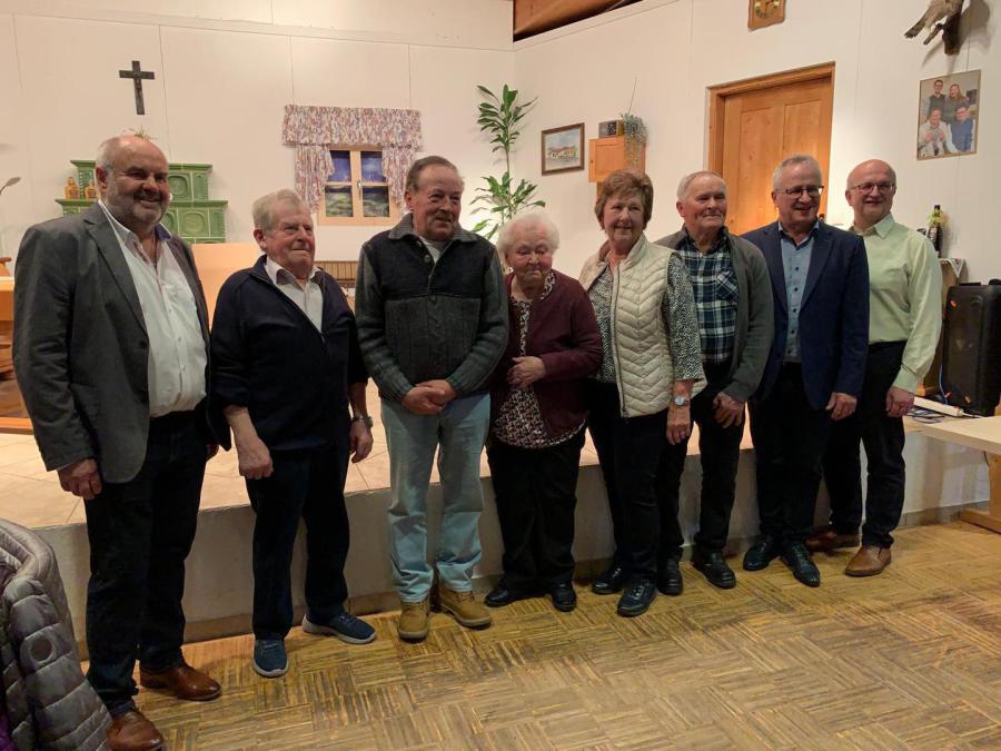 Neugewählte Vorstandschaft von links nach rechts: Kassier Karl-Heinz Pollak, Sabine Hausberger, neu in der Vorstandschaft, Gabi Hinter, Christine Dechansreiter, Johann Ebnet, 1. Vorstand Josef Eckmeier, hinten Bürgermeister Mandl, Maria Haslbeck, Matthäus Pavenzinger und Annemarie Kerscher.